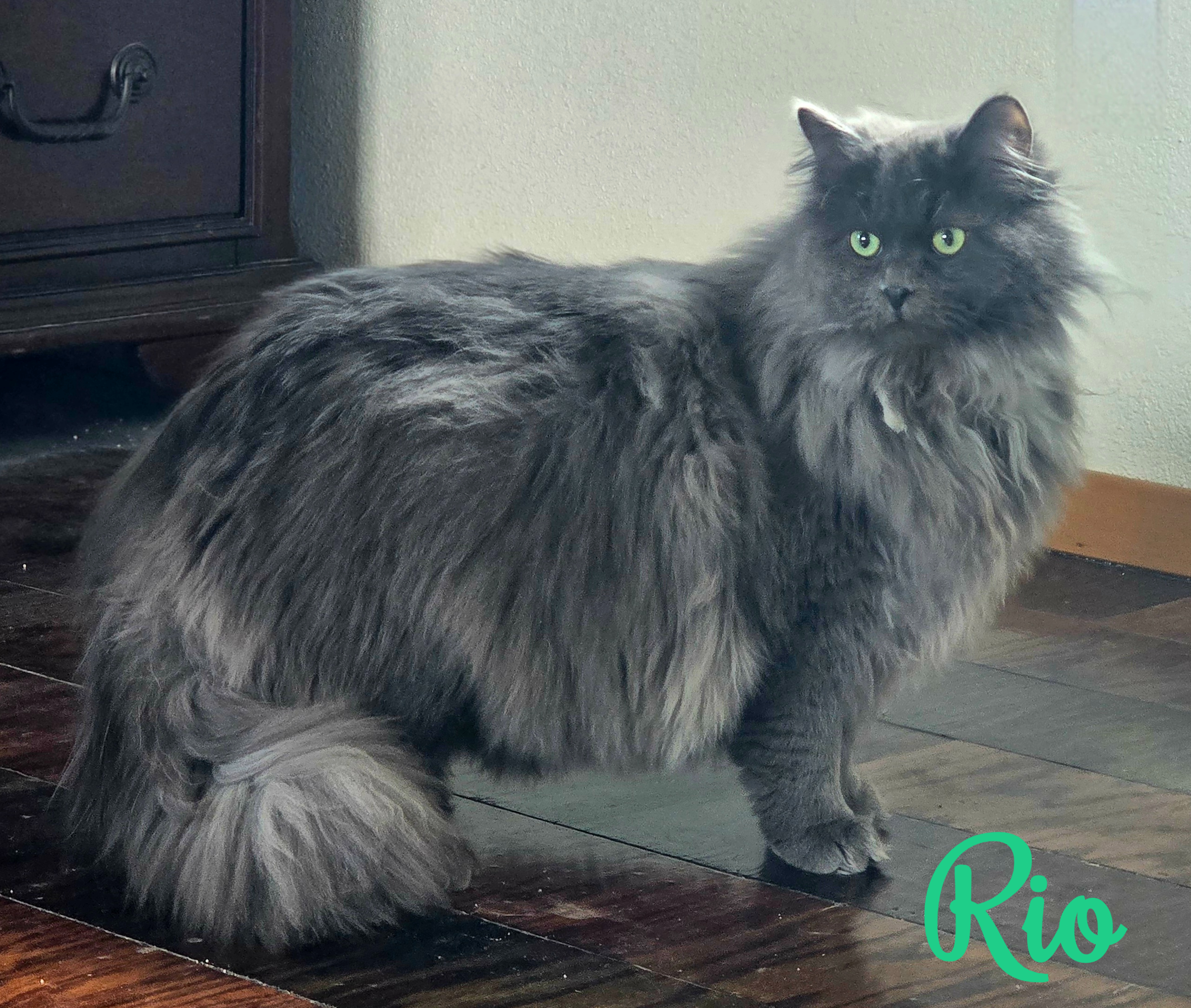 Rio is our first KING! He is a HUGE blue boy born on May 5, 2025. Rio's parents are Forest*Star's Costello (Sire) and Aisha Arione Cat, CZ/Fl (dam) out of the Czech Republic. He in a incredibly smart and loving boy. He does hate car rides and will let you know his disapproval every step of the way!